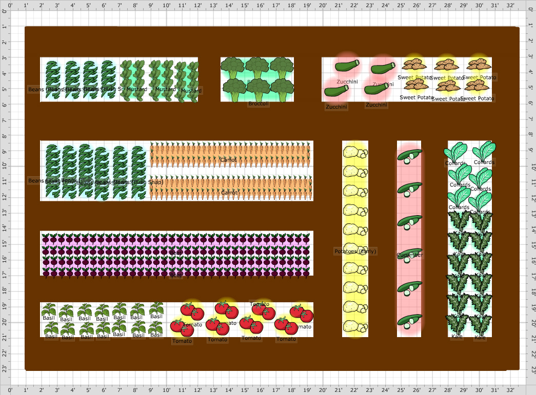 | | Plant | Number | Spacing | Spacing in Rows | Notes |